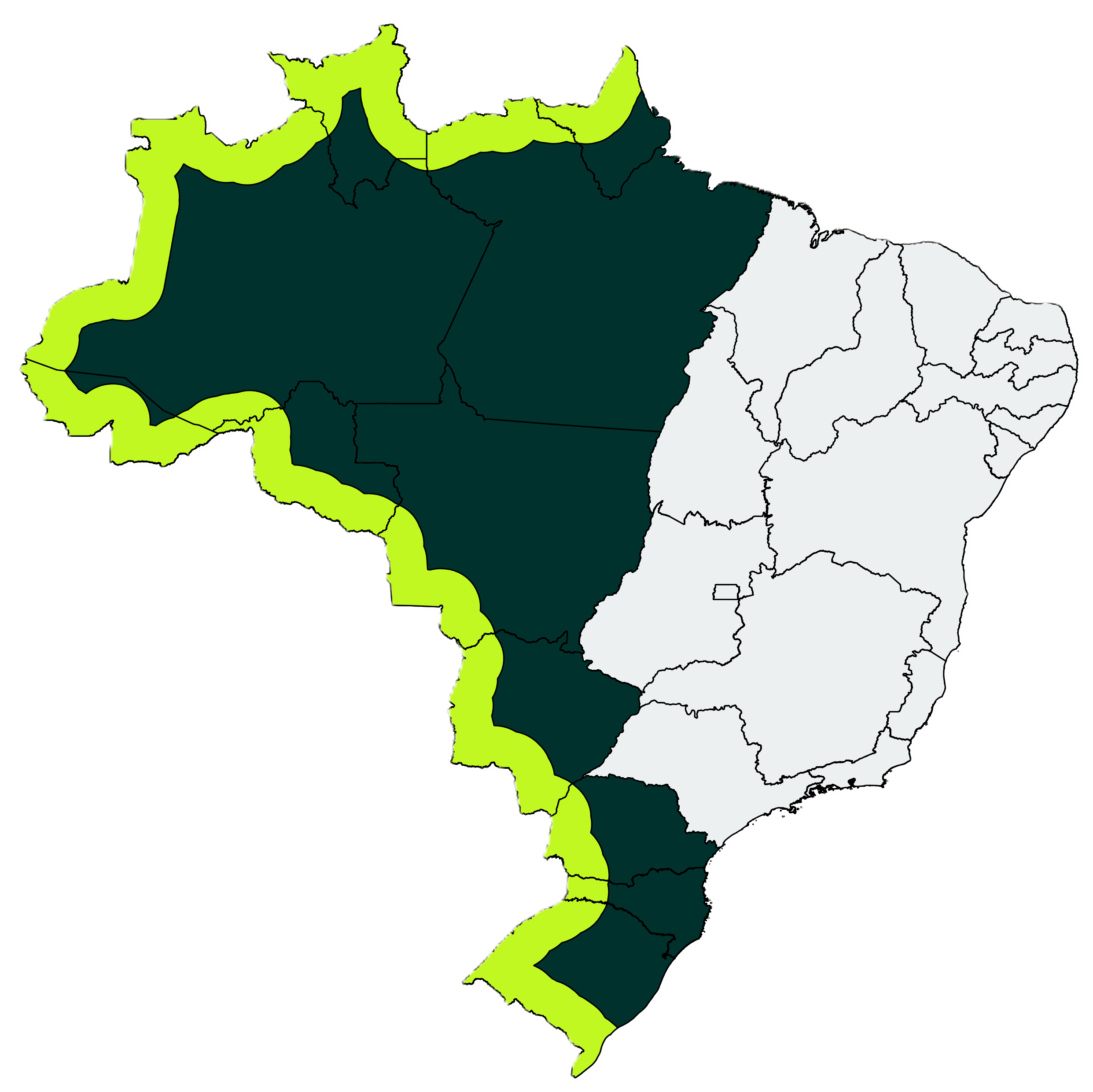 A faixa de fronteira brasileira compreende uma extensão de até 150 quilômetros a partir da linha de divisa do país.